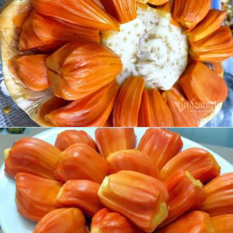 Daeng Suriya is a semi-spreading tree reaching a height of 15 to 25 feet. It is one of the best tasting Jackfruit varieties from Thailand. It has an orangish red aril with a sweet crunchy taste.